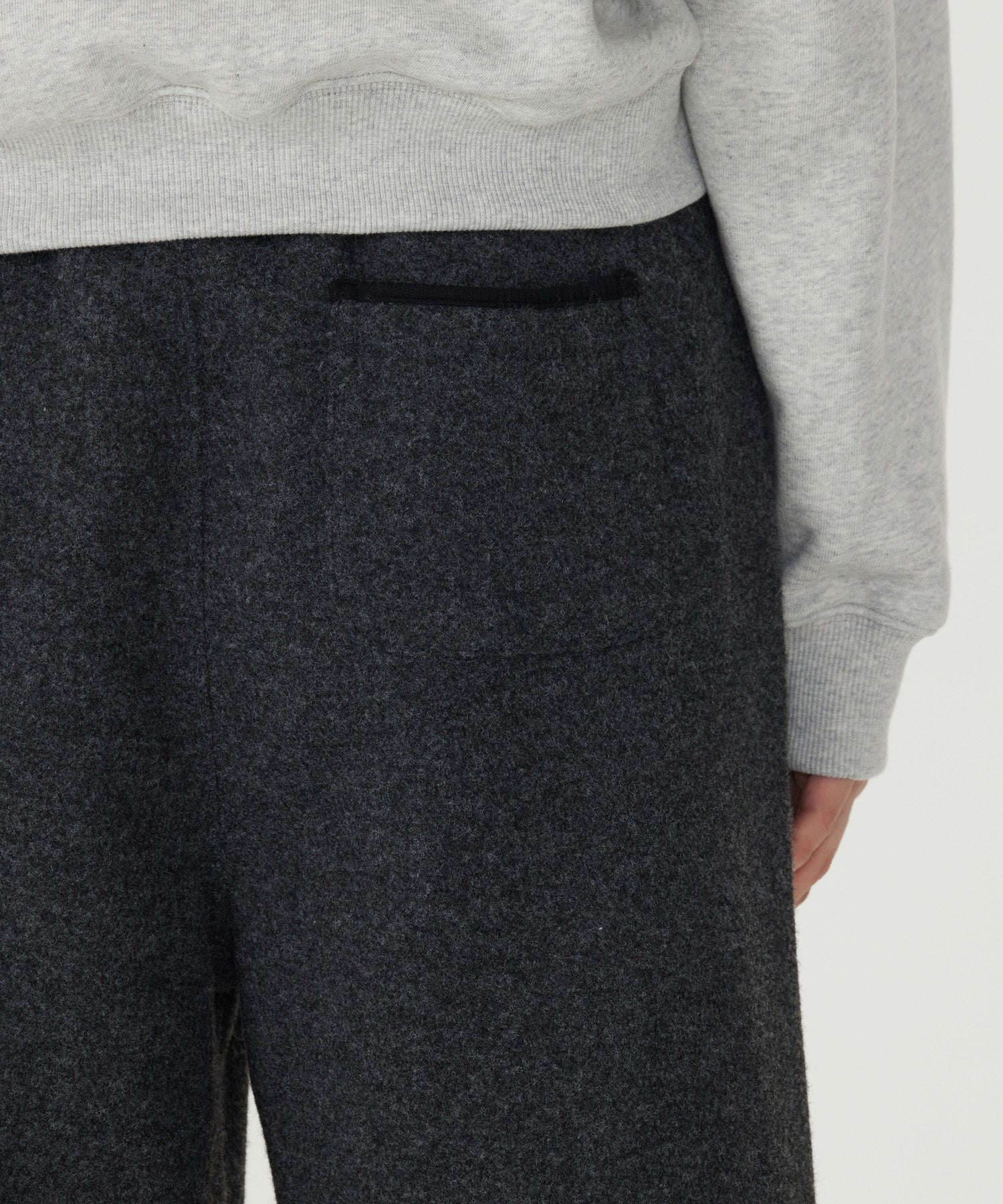 柔らかなタッチのブークレ生地を使用した快適なパンツ。