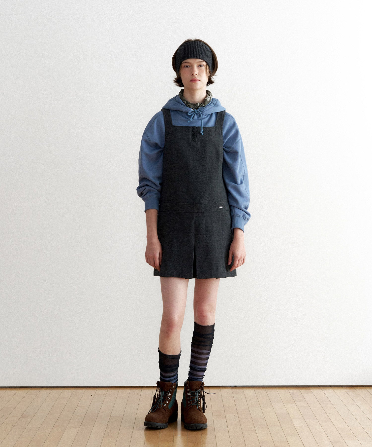 プリーツスカートのディテールにより、アウター着用時にスカートの着用感を演出