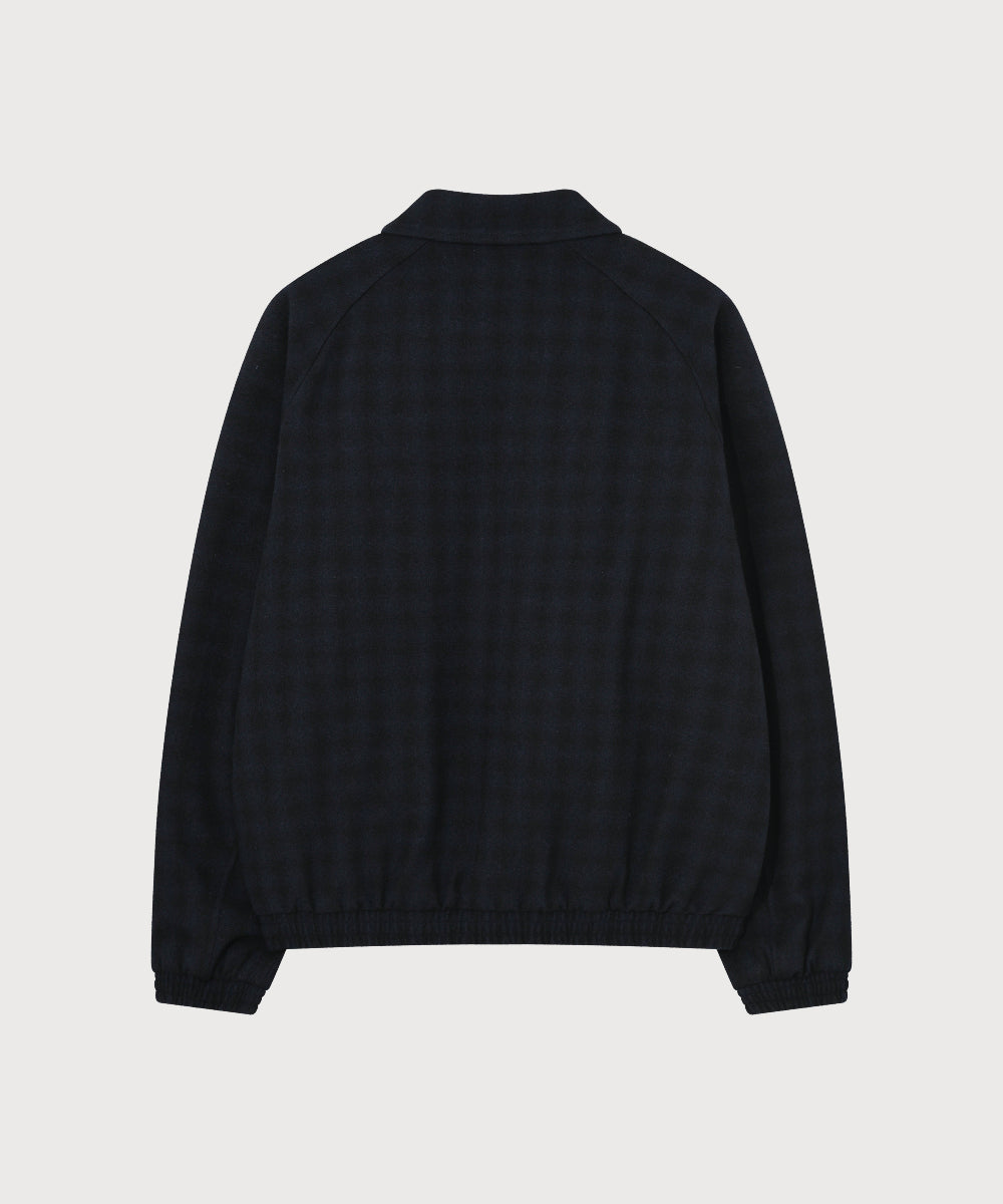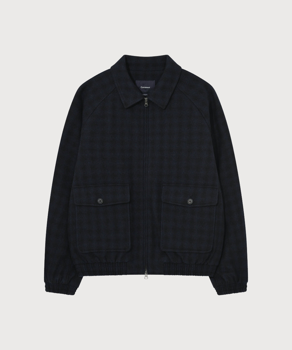 セミオーバーフィットのウールナイロン混紡チェックジャケット。