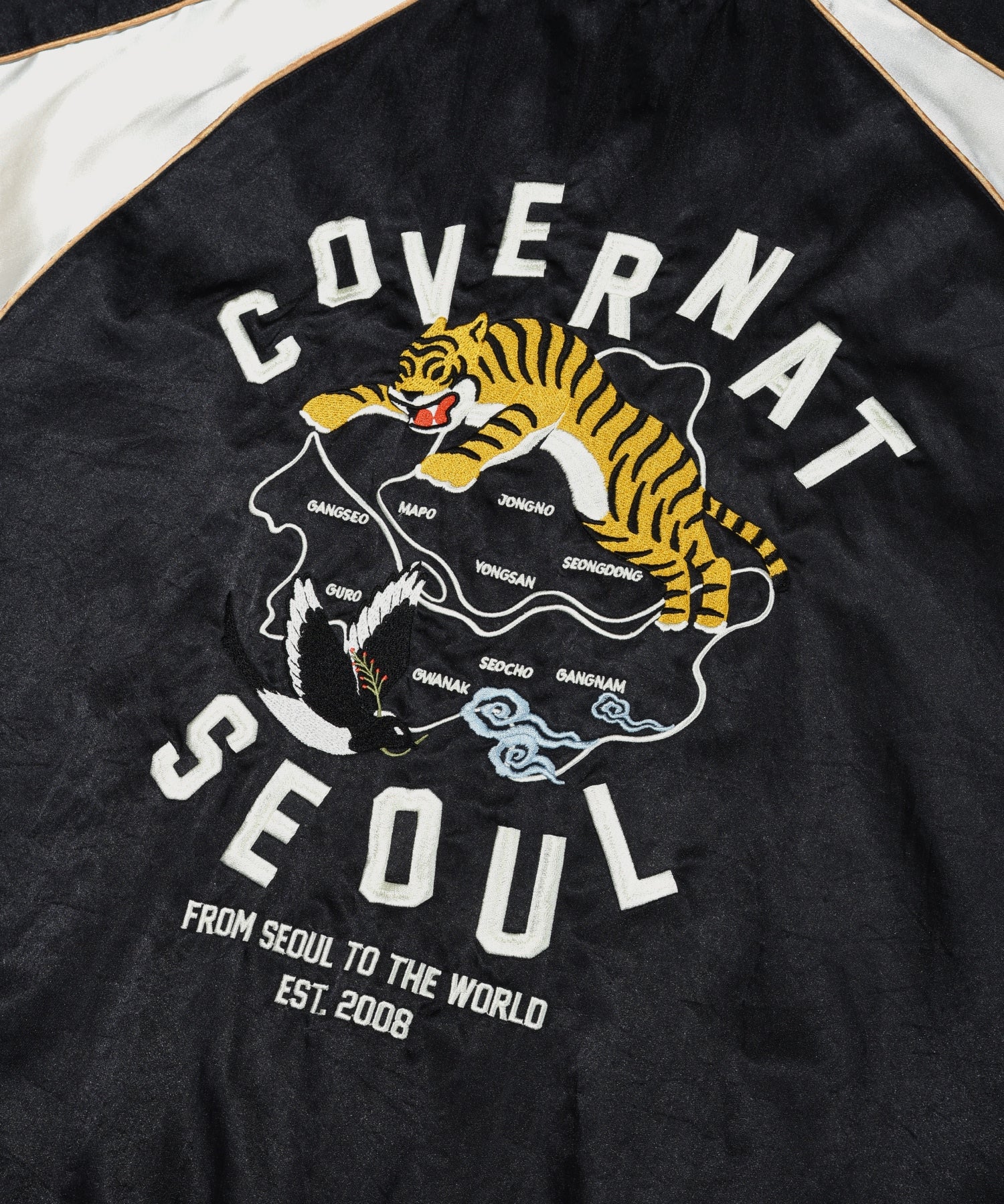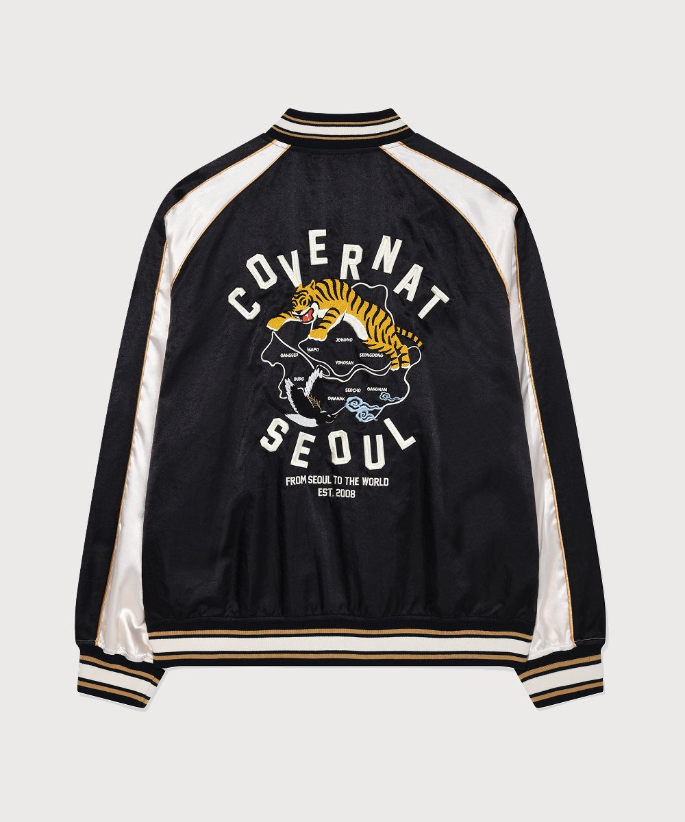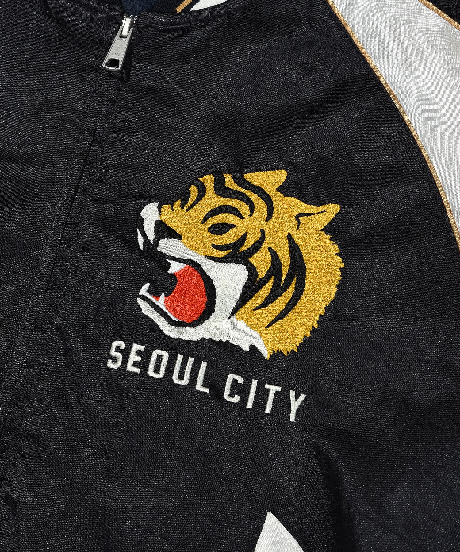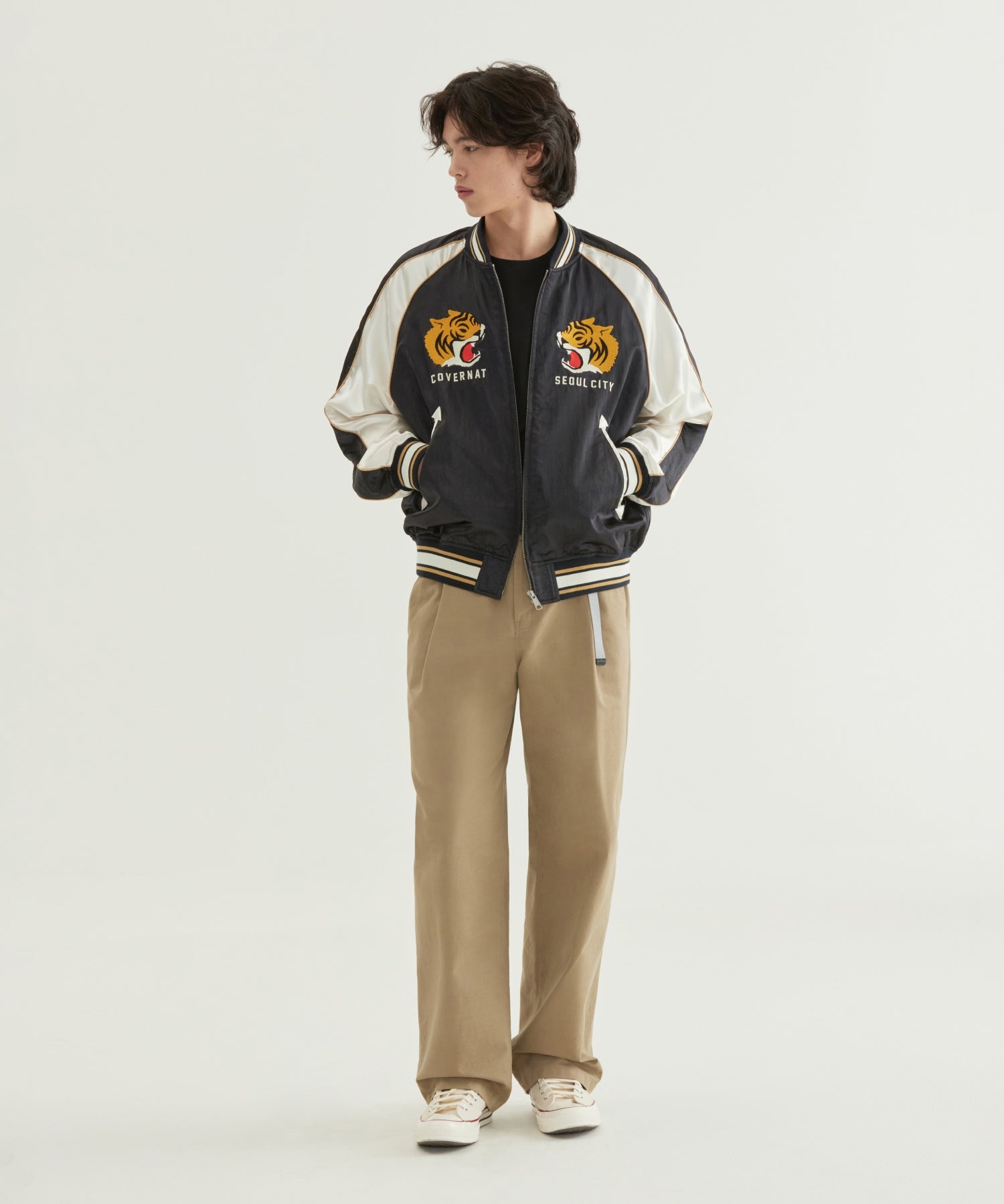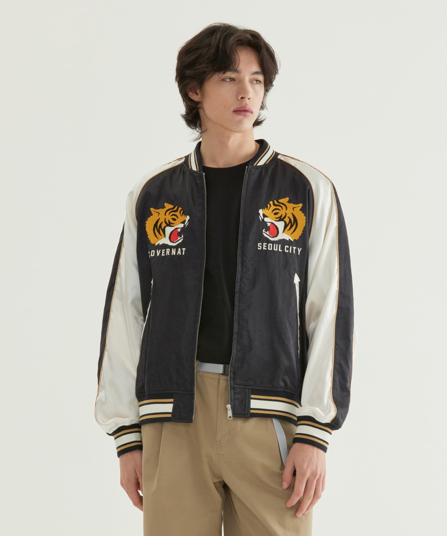 スーベニア(スカジャン)テイストのグラフィックディテールを取り入れ、ボディには切り替えライン(切開)とパイピングを施すことで、立体感のあるデザインに仕上げました。