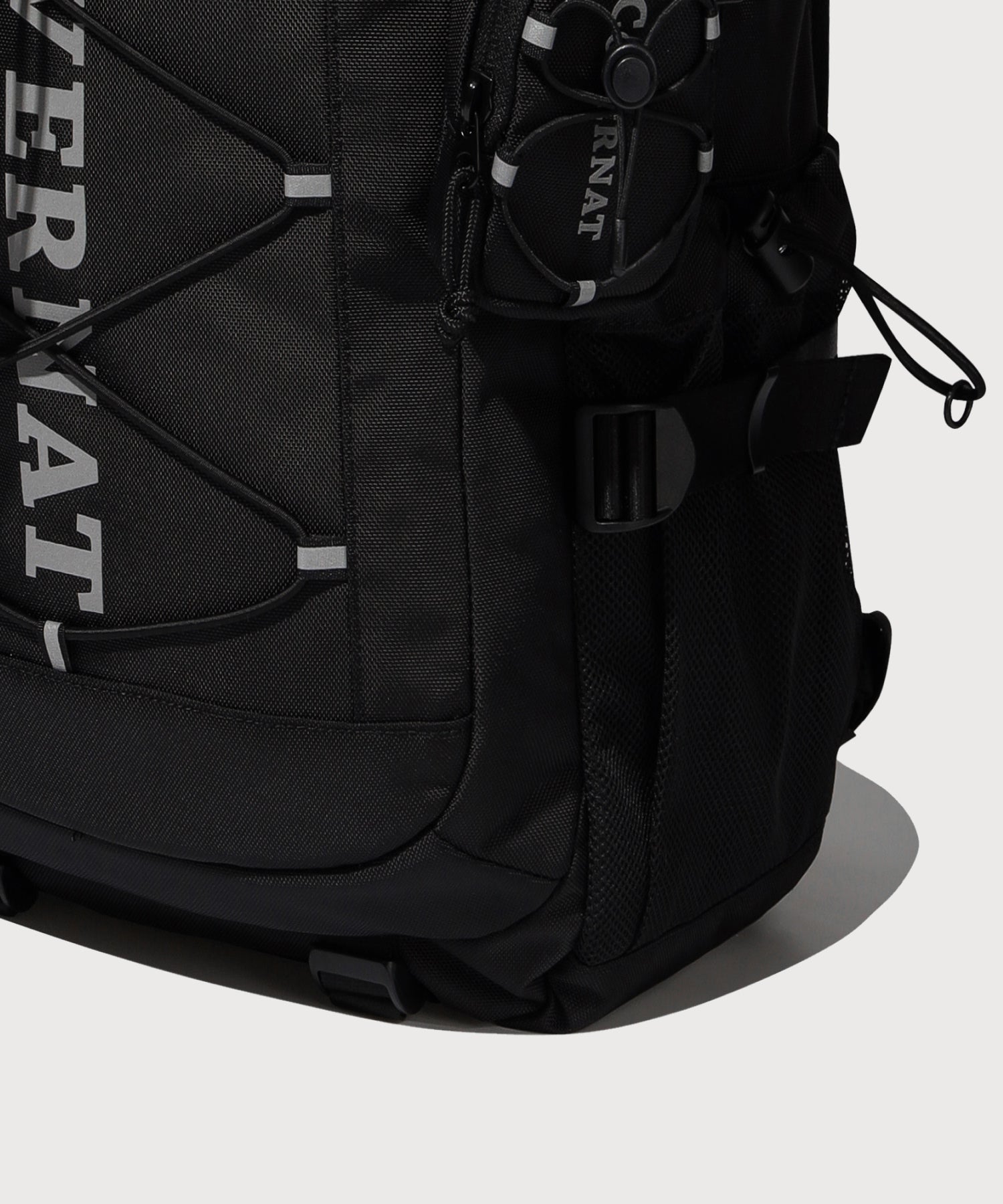 3Mリフレクティブロゴプリントとストリングディテールがデザインのアクセントに。