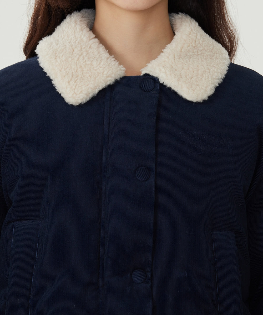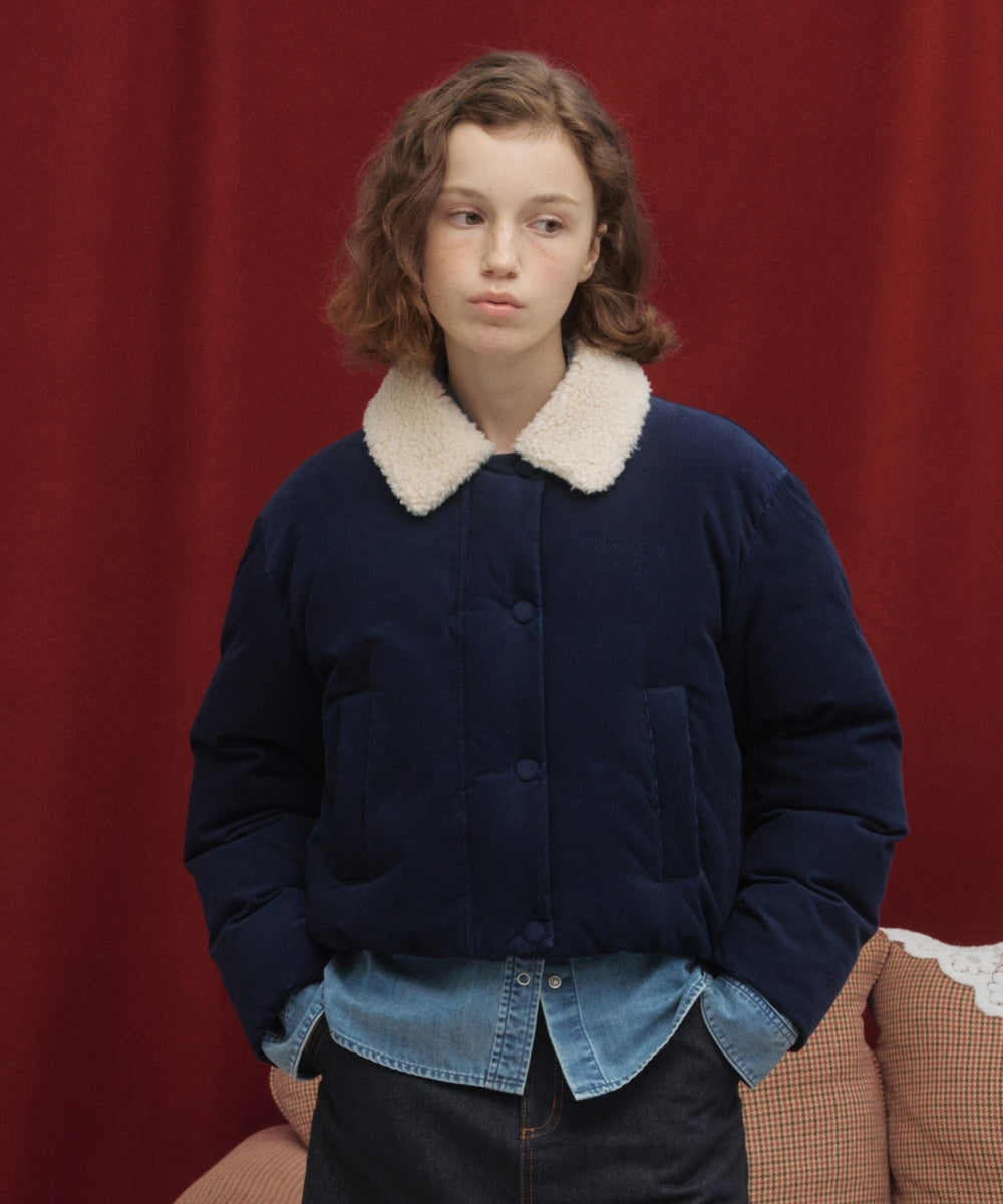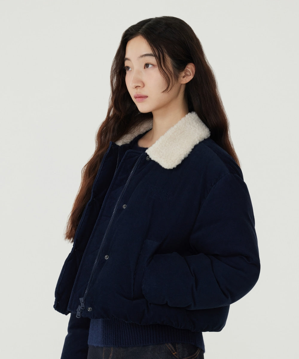 WOMAN COLLARED CORDUROY SHORT DOWN JACKET