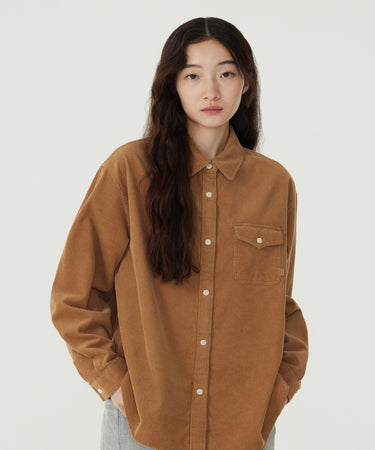 季節に適したコーデュロイ素材を使用したカジュアルシャツ。